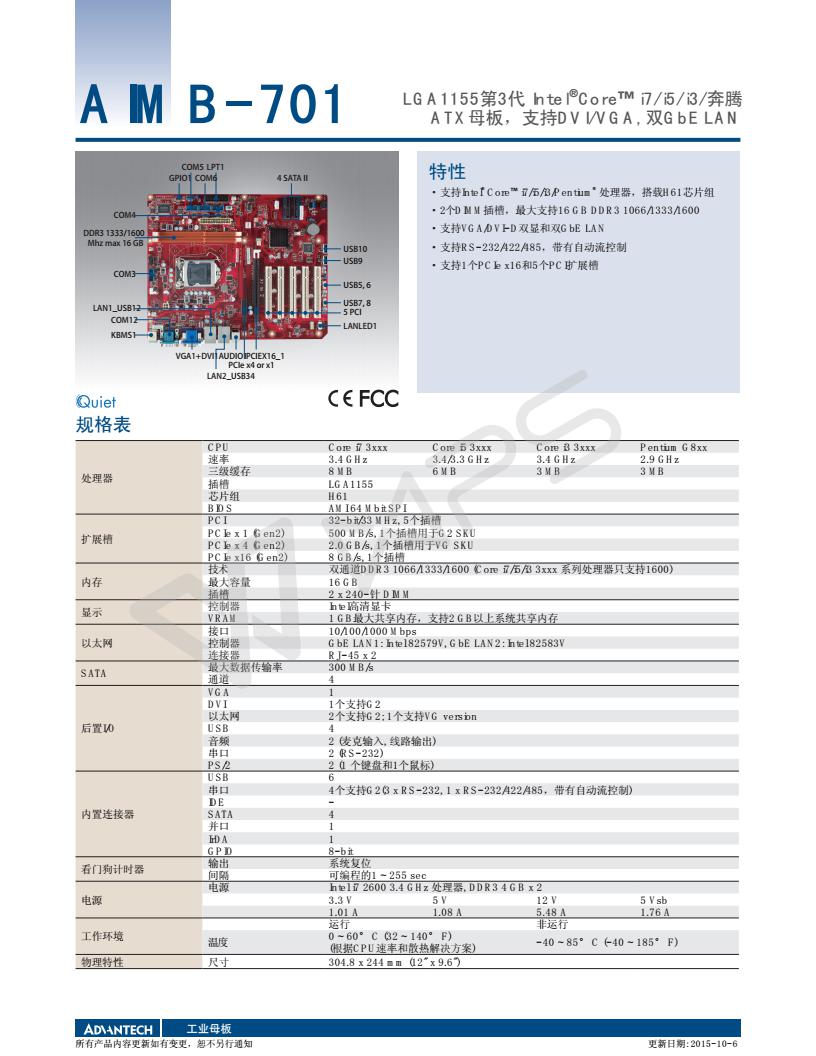 LGA 1155 Intel Core i7/i5/i3/Pentium ATX母板,帶DVI/VGA,雙GbE 網口